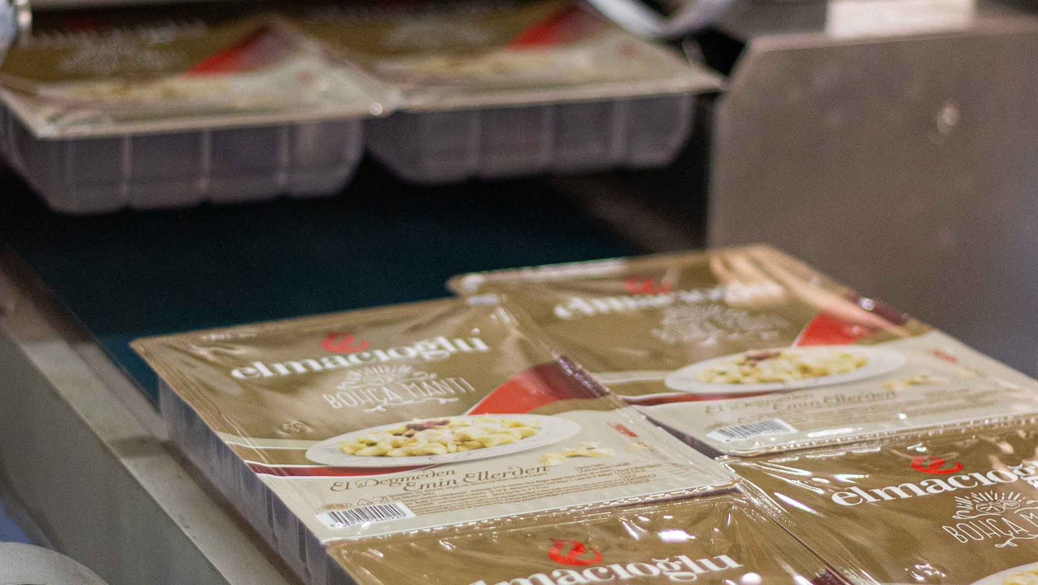 Elmacıoğlu Üretim Tesislerinde kalite standarları ve hijyenik şartlarda hazırladığımız Elmacıoğlu Bohça Mantı el değmeden emin ellerden...